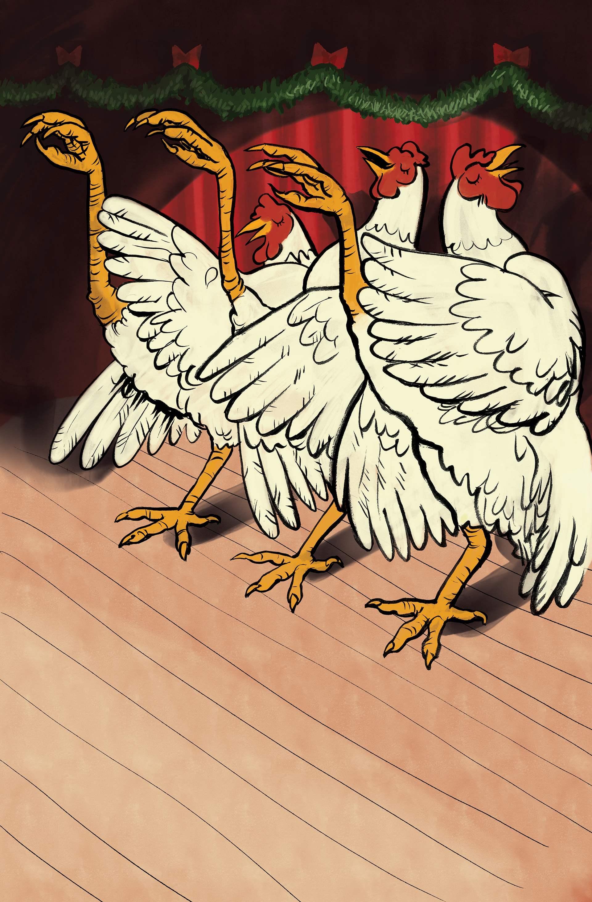 I often produce illustrations by inking with a sable brush and adding color digitally.
